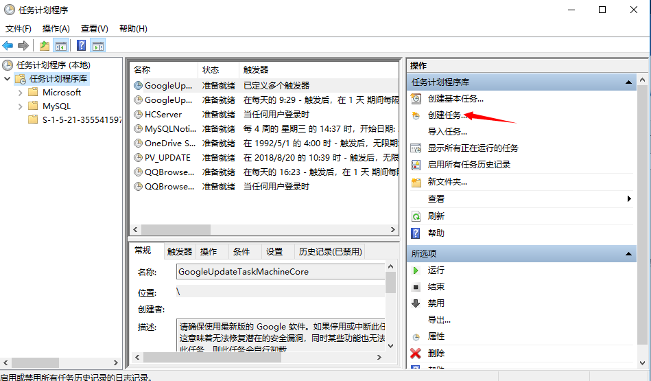 3、新創(chuàng)建一個(gè)計(jì)劃任務(wù)。如下圖: